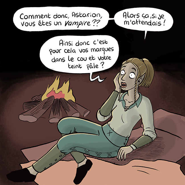 Fait gaffe avec Asta moi je l’ai laissé un peut trop boire et je sentait qu’il y avait moyen qu’il te tue en te vidant de ton sang, c’est pas prudent le All you can eat. J’ai joué à vampire la mascarade en jeux de rôle papier je sais que parfois tu foire ton jet pour ne pas vider ta proie ^^