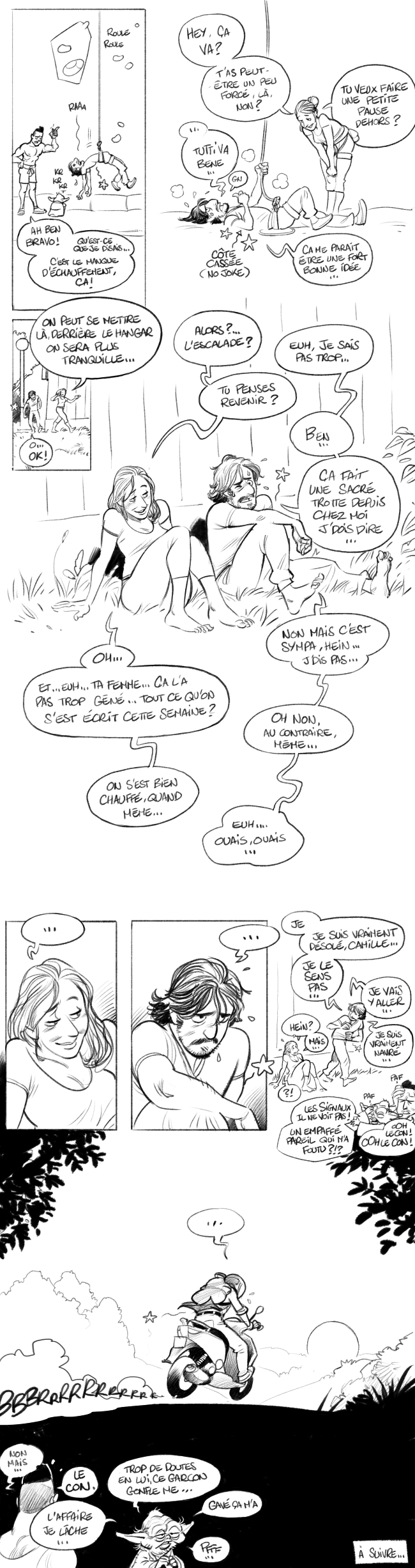 …y’a pas, cette série m’attriste…il parle de « gagner son coeur », il n’ose pas, tu le pousse dans les bras d’une autre…et tout ça pour quoi ? Je commence à croire que Mouais a raison, ça sent la fin pas assumée d’une histoire…vous ne semblez pas hyper alignés sur ce projet, et je trouve ça assez choquant en fait. Passer plus de 15 ans avec quelqu’un, et le pousser vers ça…ben…franchement, ça fait pas rêver, déso