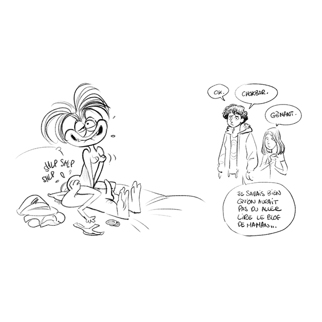 C’est super que ce sujet si méconnu et si tabou (pourquoi l’est-il, au fond ?) soit évoqué dans tes BD, en partie sérieusement et en partie de façon humoristique. Ca permet de le faire connaître un peu et de faire parler.