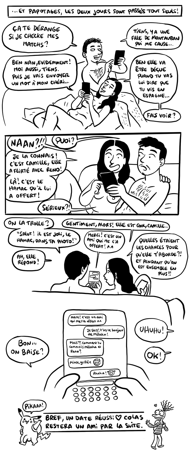 Horrible, oui, tout ceci est horrible. Comment peut-on supporter que sa femme aille faire un plan cul avec je ne sais quel connard d’une appli-cul. Comment ? Il est où l’amour ?