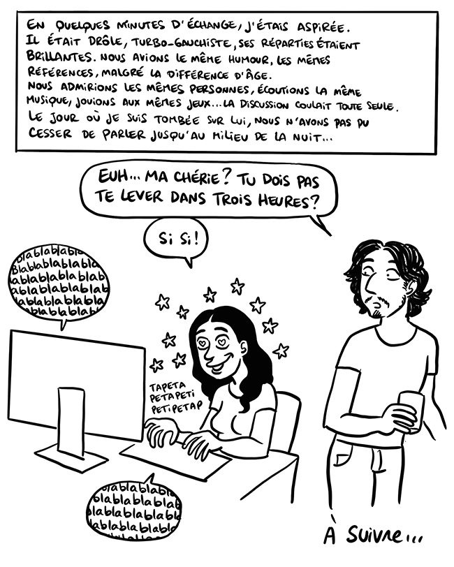 Vraie question parce que ça m’intrigue du coup (par parité on avait fait la même remarque à Reno sur Magda) : vous ne mettiez aucune limite d’âge sur les applis de rencontres ? Tu as presque 20 ans de plus que 28 ans, on est quand même sur un écart d’une génération.
